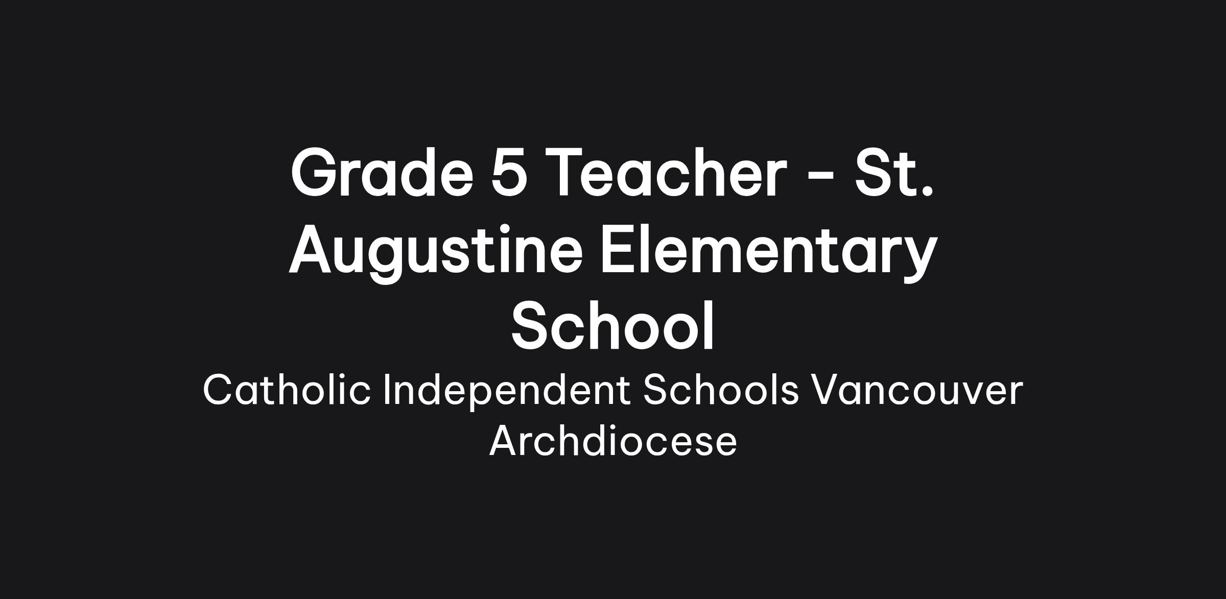 St. Augustine School is seeking a full-time Grade 5 teacher. This position includes the teaching of all curricular areas, including Christian Education; though the school employs specialists in PHE, Music, and French. Because we are a double-stream school, the applicant must be able to work collaboratively with a partner teacher. In addition, the applicant must be proficient in the use of technology, specifically with the Google Workspace platform and the program SeeSaw. Furthermore, the successful applicant will be involved in the extra-curricular activities of the school and have a proficiency in technology and, in particular, the use of Google Classroom, and the use of programs such Seesaw as well as Second Step in your teaching are also assets.