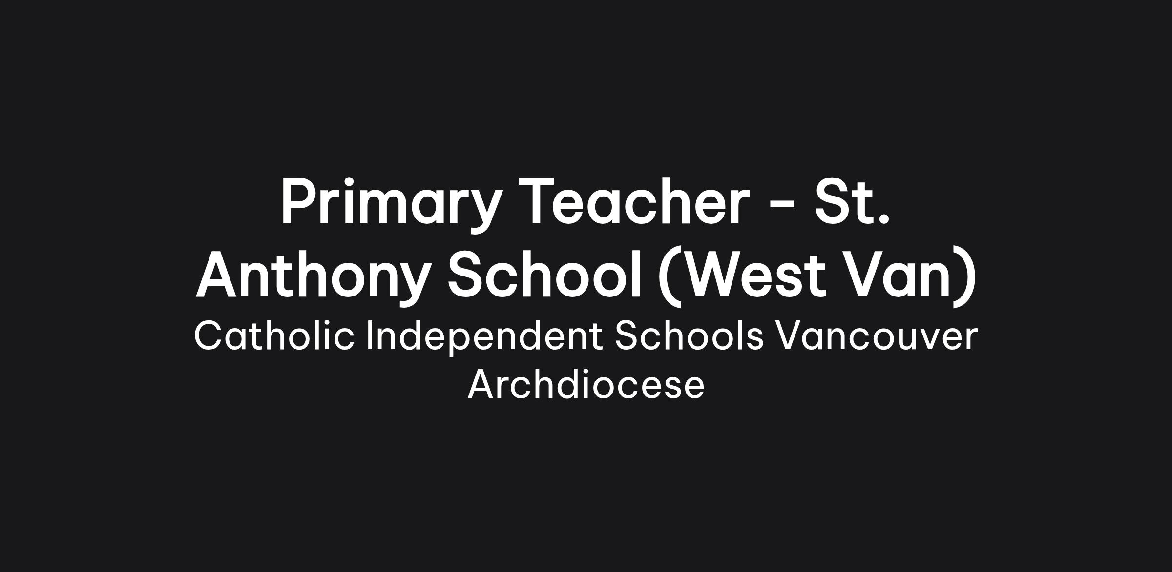 Primary Teacher - St. Anthony School (West Van)